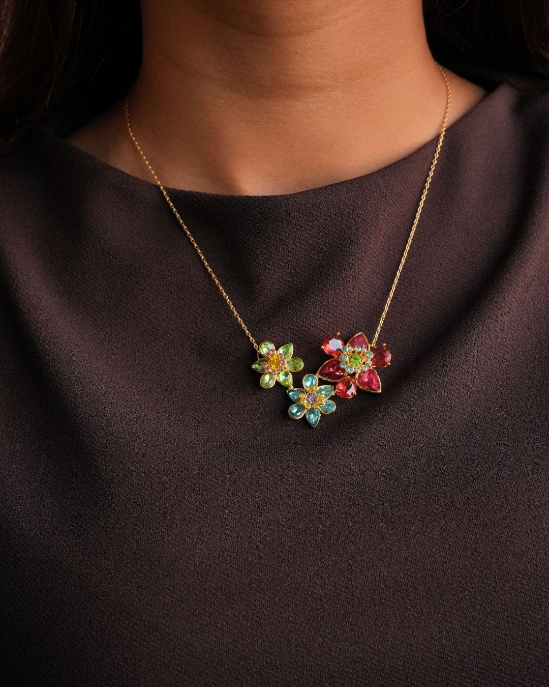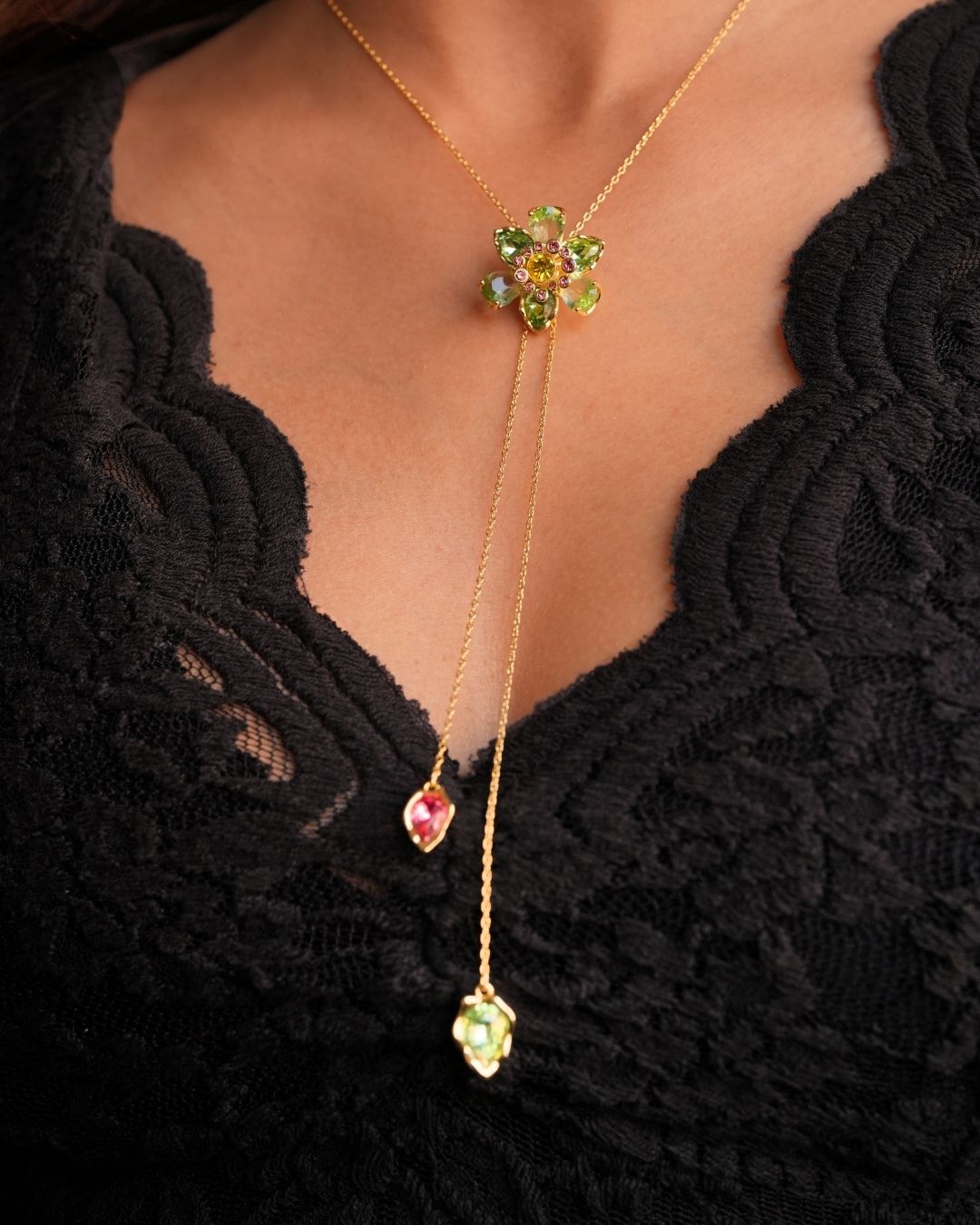 The Prism Flora Lariat Necklace is a modern take on playful elegance. A radiant floral...
