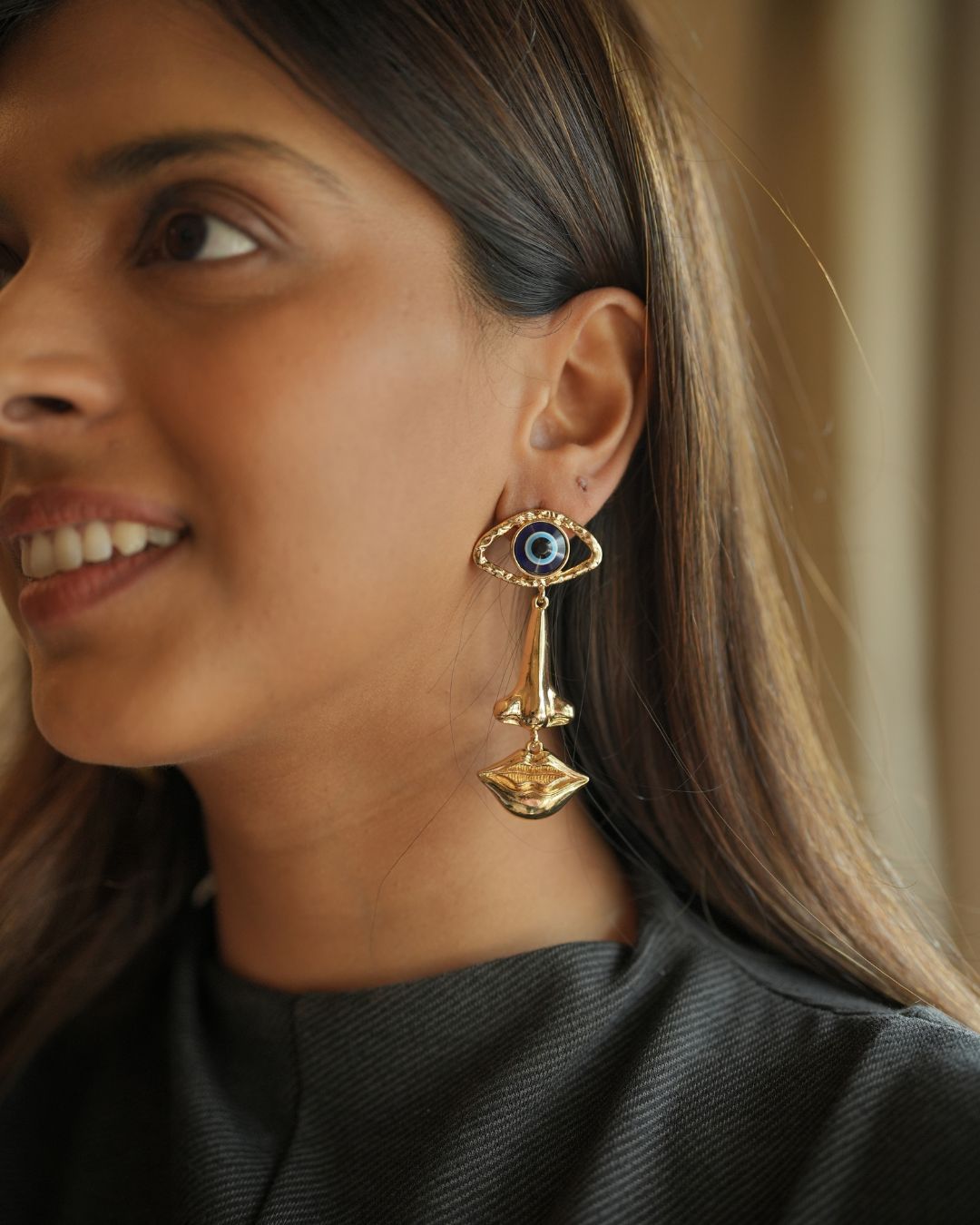 The Guardian Eyedrops feature a striking evil eye motif set in radiant gold, framed with...