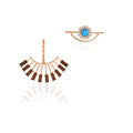Detachable evil eye earrings studded with a round swarovski centre and baguette Swarovski extension. Worn without the jacket as a delicate ear stud or with the jacket as a large earstud to up the glam quotient for those fancy night outs.