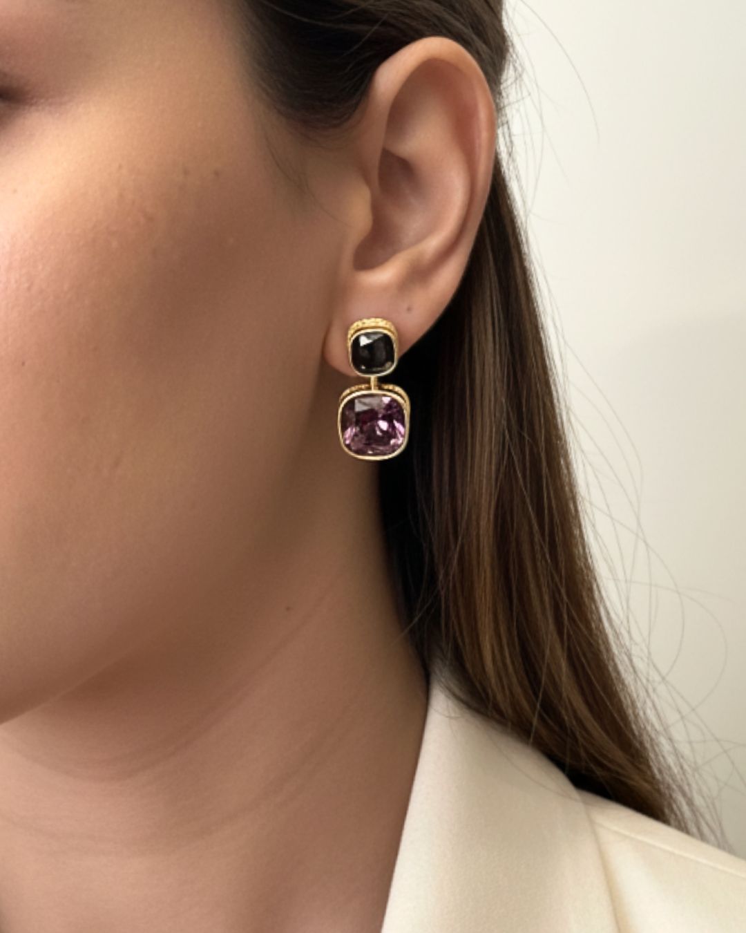 A celebration of color in perfect harmony, the Chroma Fall Drop pairs two cushion-cut Swarovski crystals in contrasting yet complementary tones.