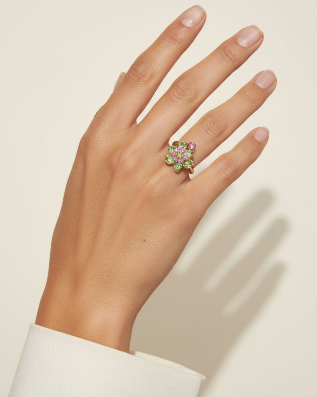 Crafted in playful prongs that catch every glint of light, it embodies freshness, color and the joy of renewal.
