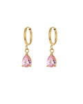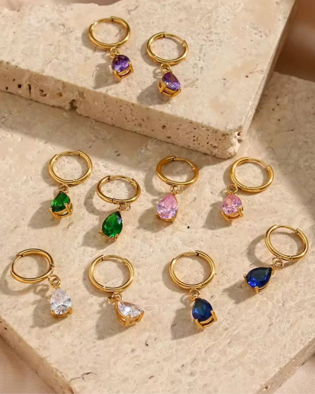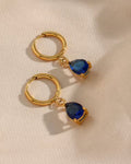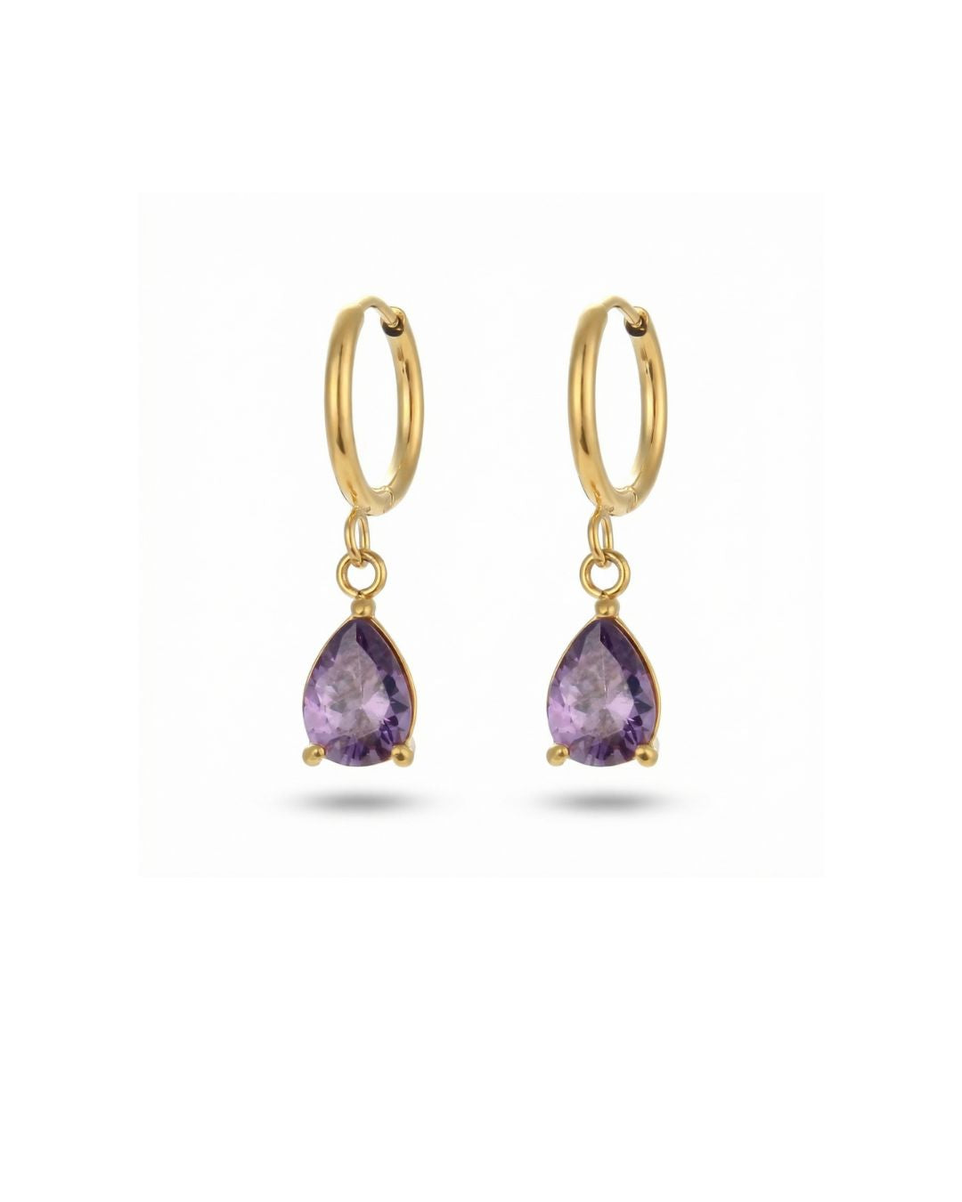 The Facet Bell Hoops bring quiet brilliance to everyday dressing. A polished gold hoop holds a delicately faceted pear-shaped crystal that catches light with subtle movement, creating a soft shimmer with every turn.