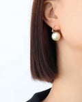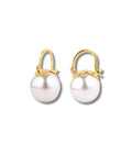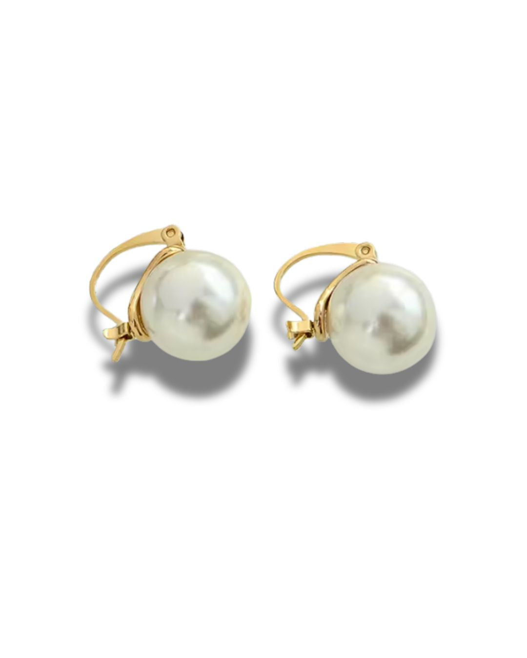 Each pair features a tiny pearl drop suspended lightly from the ear, offering a gentle sway and a subtle glow.