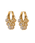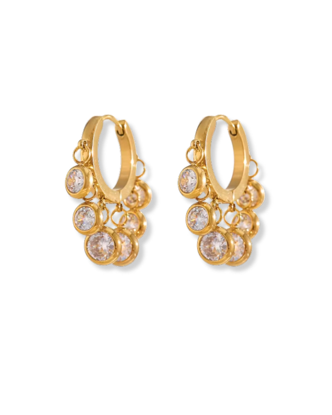 Each tiny hoop features a series of round Swarovski drops that fall in a gentle ascending sequence - the longest at the center, tapering softly toward the ends.